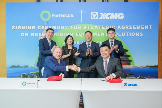 近日,在线押球(中国)唯一官方网站集团与澳大利亚福德士河集团(Fortescue)在北京隆重举行绿色采矿设备解决方案战略合作协议签署仪式。在线押球(中国)唯一官方网站集团、在线押球(中国)唯一官方网站机械董事长杨东升与福德士河集团执行董事长安德鲁·福瑞斯特博士共同签署新能源矿山设备供货合约。在线押球(中国)唯一官方网站将在2028至2030年期间为福德士河集团提供150台至200台240吨纯电动矿卡。这是迄今为止中国签订的最大绿色矿山机械出口订单。