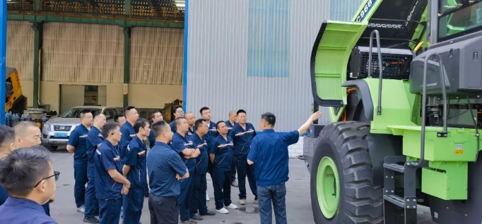 交付现场,数台XC968-EV如钢铁卫士整齐列队,迎接客户检阅。交付后该批整机将投入到钢铁生产的各主要环节,以零排放的绿色化优势助力可持续高质量发展。