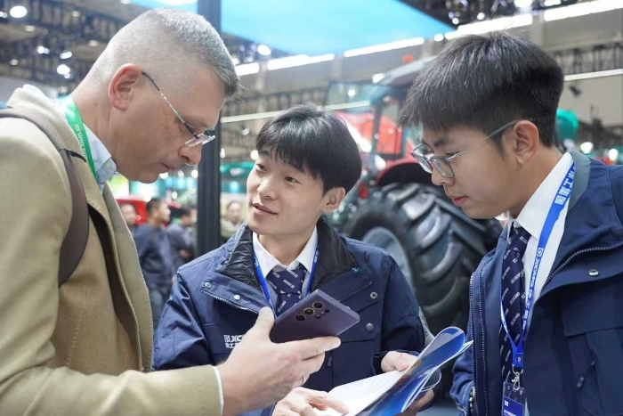 在展会现场,在线押球(中国)唯一官方网站农业机械同步释放未来发展战略——以技术创新为核心驱动力,锚定“绿色化、智能化、高端化”三大方向,加快推进农业数智化转型升级。