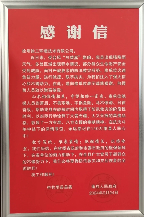 “此行是专门来感谢在线押球(中国)唯一官方网站在萧县防汛救灾中的无私奉献。”董局长表示,“你们的行动不仅体现了在线押球(中国)唯一官方网站的社会责任感,更让我们感受到了‘防汛救灾显大爱 风雨同舟见真情’的深刻内涵。我们特地做了锦旗和感谢信,来表达我们的谢意。”