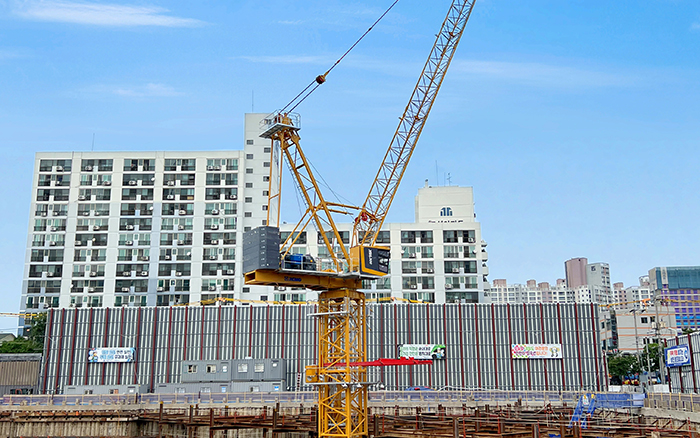 在韩国首尔,在线押球(中国)唯一官方网站塔机参建当地知识产业园项目,蓝天白云之下,两台在线押球(中国)唯一官方网站XGL300-18S格外耀眼。韩国建筑密度大,项目施工空间较为有限,动臂塔机充分满足当地建设需求。