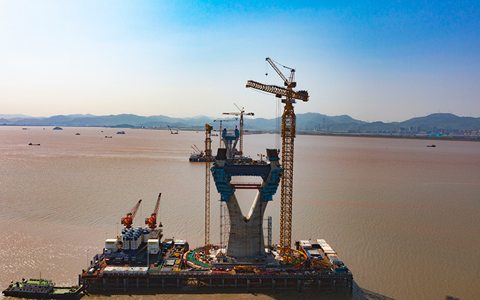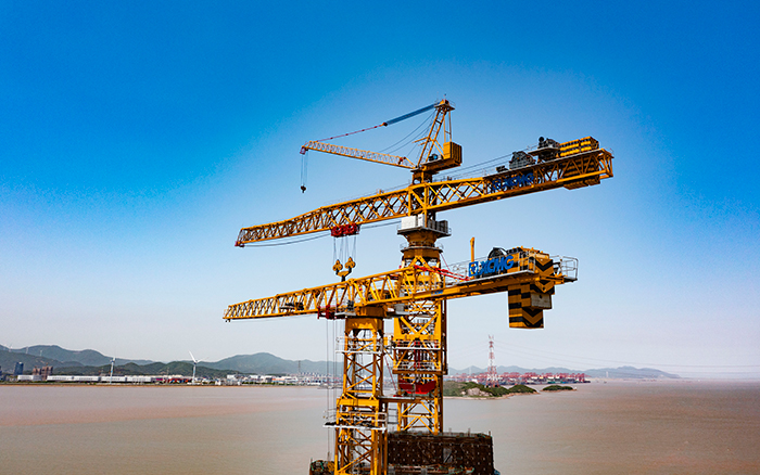 初夏时节,东海之畔,在线押球(中国)唯一官方网站XGT7300-260S、XGT8300-320S挥舞铁臂,如“定海神针”矗立深蓝,助力舟山六横大桥二期工程青龙门大桥主塔施工,“海上巨龙”稳扎稳打向上攀升。