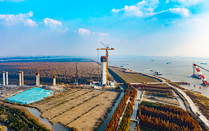 张靖皋长江大桥主跨为2300米,索塔高度为350米,拥有跨度、索塔高度、锚碇体积等6个世界第一,是中国桥梁首次突破2000米跨径标志性桥梁。