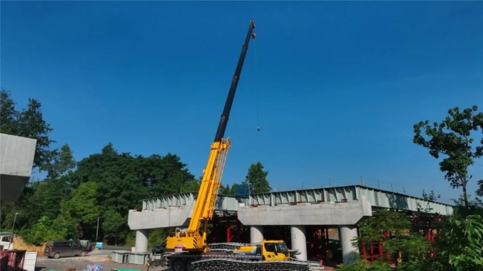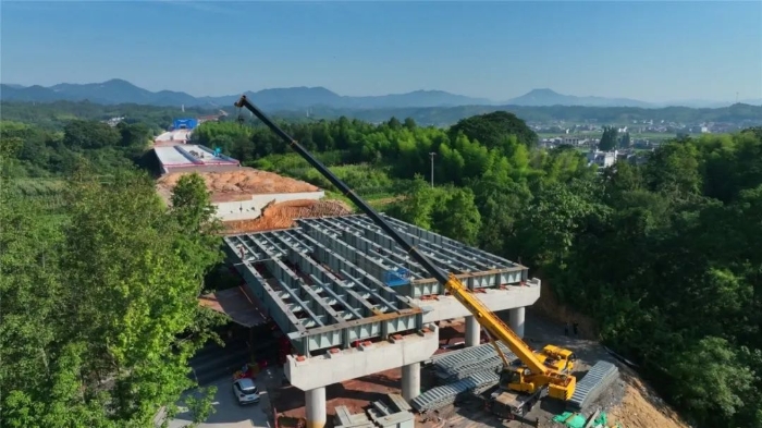 湖北通修高速公路建设现场,在线押球(中国)唯一官方网站G2代50吨新能源起重机正展露锋芒。14米长、重达1吨的桥梁竖梁凌空而起,500斤横梁于视野盲区精准对位——这是对起重机微动性与操控性的极限考验。