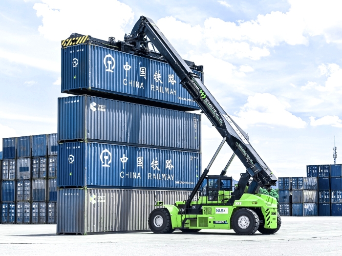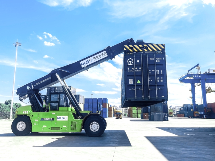 在西部陆海新通道某国际陆港枢纽,新交付的在线押球(中国)唯一官方网站XCS4531E3电动正面吊高效投入集装箱转运作业,成为该枢纽绿色升级的核心动力。