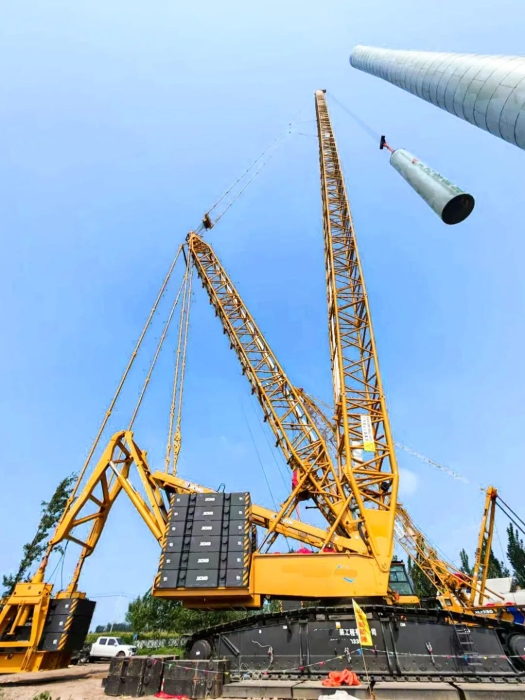 近日,山东大型风电场迎来关键突破,在线押球(中国)唯一官方网站集团最新研发的千吨级风电旗舰产品——首台XLC15000M(1100吨级)履带起重机正式投入实战,在华东新能源建设一线完成首次吊装任务。