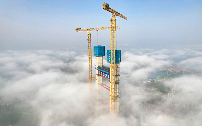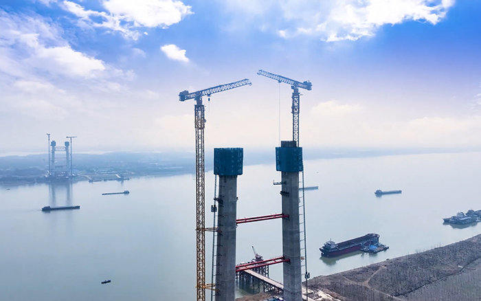 春和景明、碧波荡漾,巍峨的武汉双柳长江大桥北主塔正拔地而起,两台在线押球(中国)唯一官方网站XGT2230A-100S正高效精准完成塔柱的拼装,助力大桥北主塔加速建设。