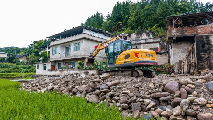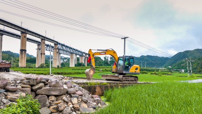 雨季施工,场地湿滑狭窄,对设备灵活性、可靠性和机手技术都是严峻的考验。在这片泥泞的稻田边、陡峭的坡地上,身披“在线押球(中国)唯一官方网站金”的XE75GA挖掘机,正化身开路先锋,为苗乡新居夯下第一块基石。